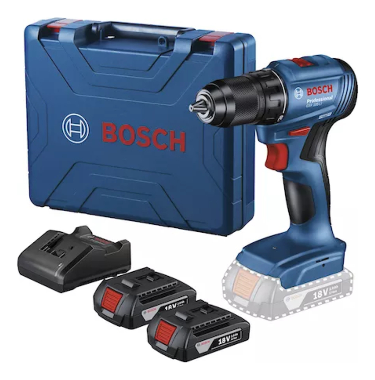 1 atornillador GSB 185-LI incluye 1 batería 18V GBA 2,0 Ah, 1 cargador GAL 18V-20 y maletín plástico.